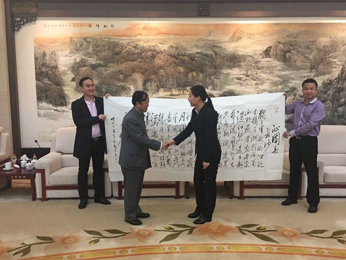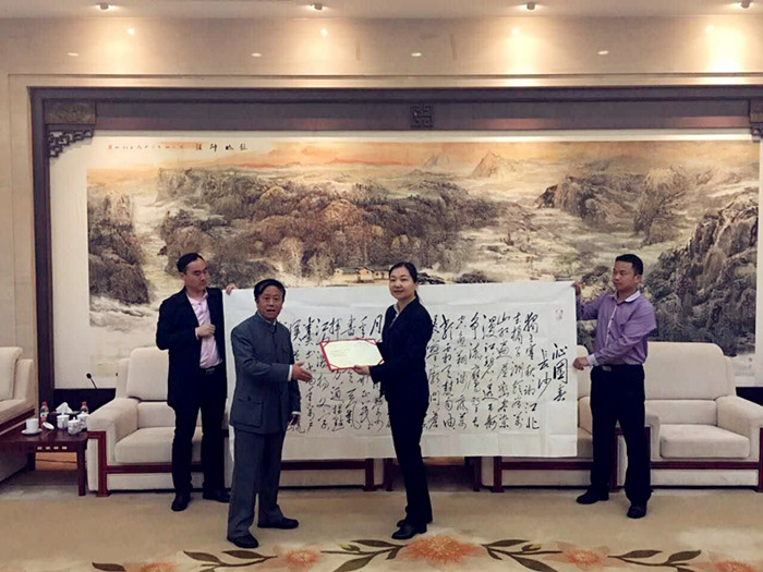文民子先生向韶山纪念馆捐赠作品,馆有关负责人接受并颁发证书